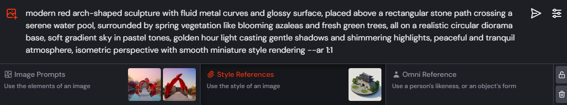 다 내가 예상한 결과물에서 벗어난 것이라 모두 만족스럽지는 않지만 그래도 고르라고 한다면 나는 제미나이 이미지를 고를 것 같다. 물론 실제스러움에 대해서는 역시나 미드저니가 앞서 나가는 것 같다. 그리고 미드저니는 Style Reference와 Image Prompt 등 사용할 수 있는 옵션이 많다보니 계속 실험하다보면 내가 원하는 모양대로 나올 것 같기도.