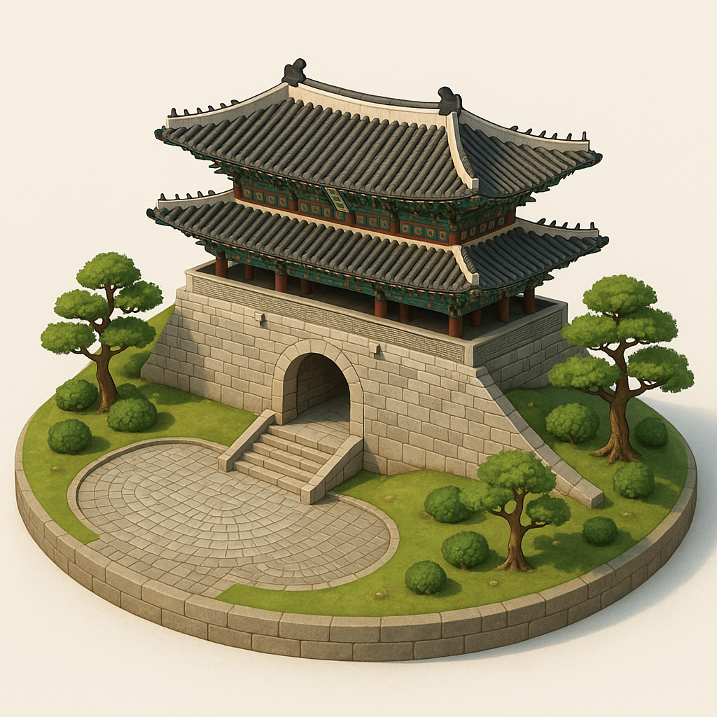 "features": ["arched stone passageway", "multi-tiered roof with dancheong patterns", "stone stairs with handrails"]